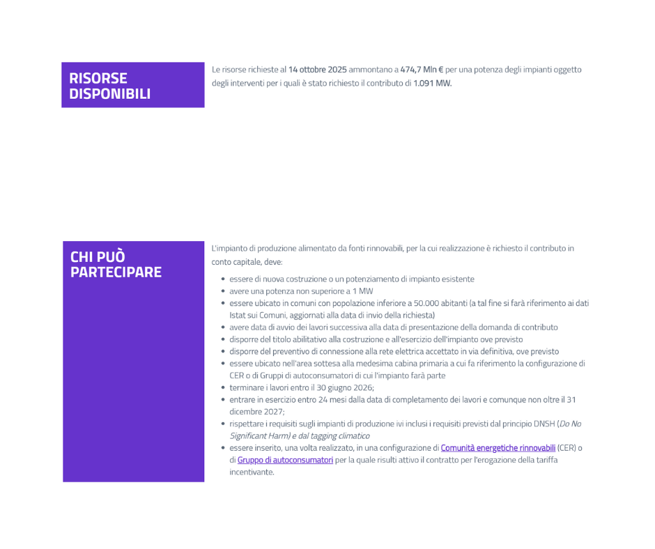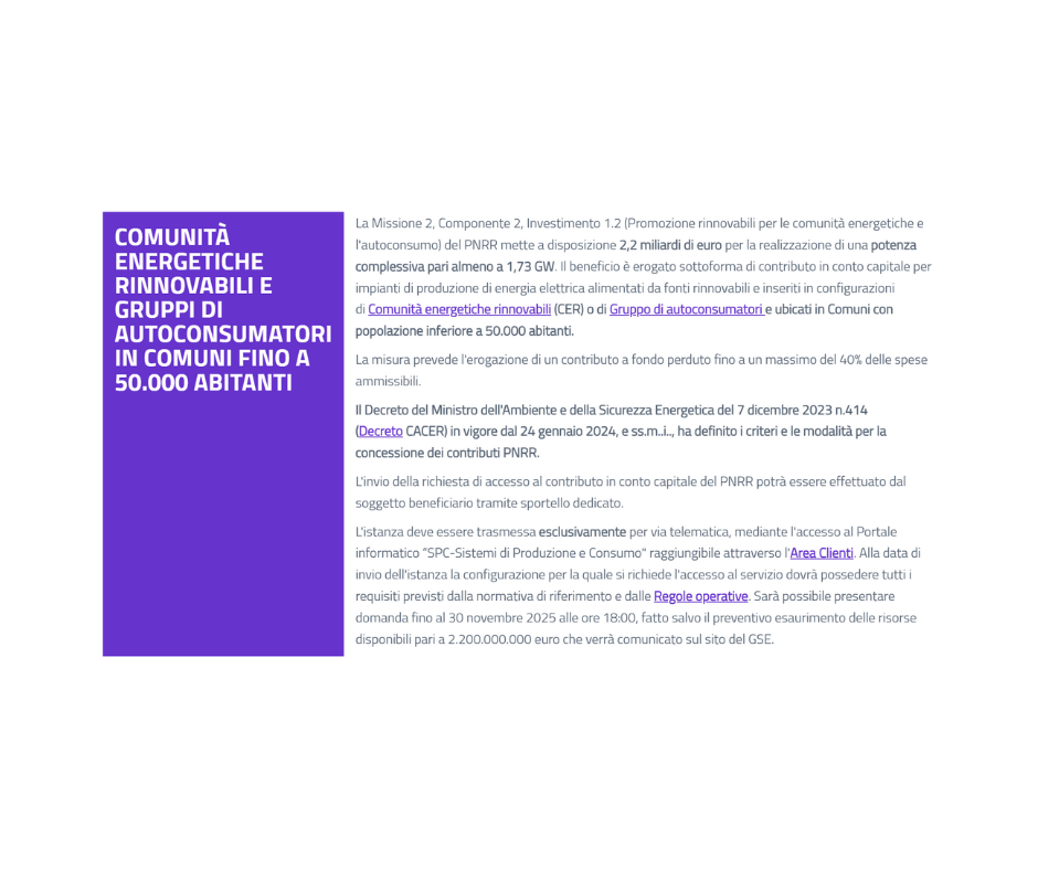- Per Privati e Imprese, nuovi impianti fotovoltaici o potenziamento impianti già esistenti, in comuni sotto i 50.000 abitanti.